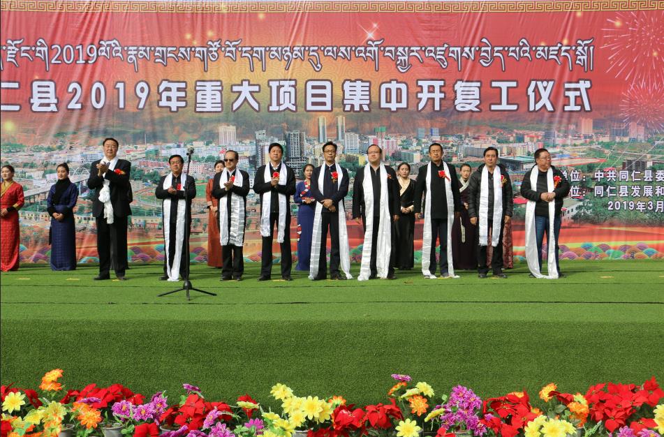 正是春潮涌动时,扬帆破浪气象新。3月19日,同仁县隆重举行2019年重大项目集中开复工仪式。州委书记王振昌,州人大常委会主任李加才让,州委常委、州政府副州长杨志军,州委常委、县委书记蒋树成,州相关部门负责人及同仁县四大班子主要负责人,县政府各副县长、县直各部门主要负责人,同仁县各施工企业、监理单位,项目所在地群众代表等800余人参加了仪式。州委书记王振昌宣布2019年重大项目建设正式开工,县委常委、县政府副县长胡伟东主持仪式。