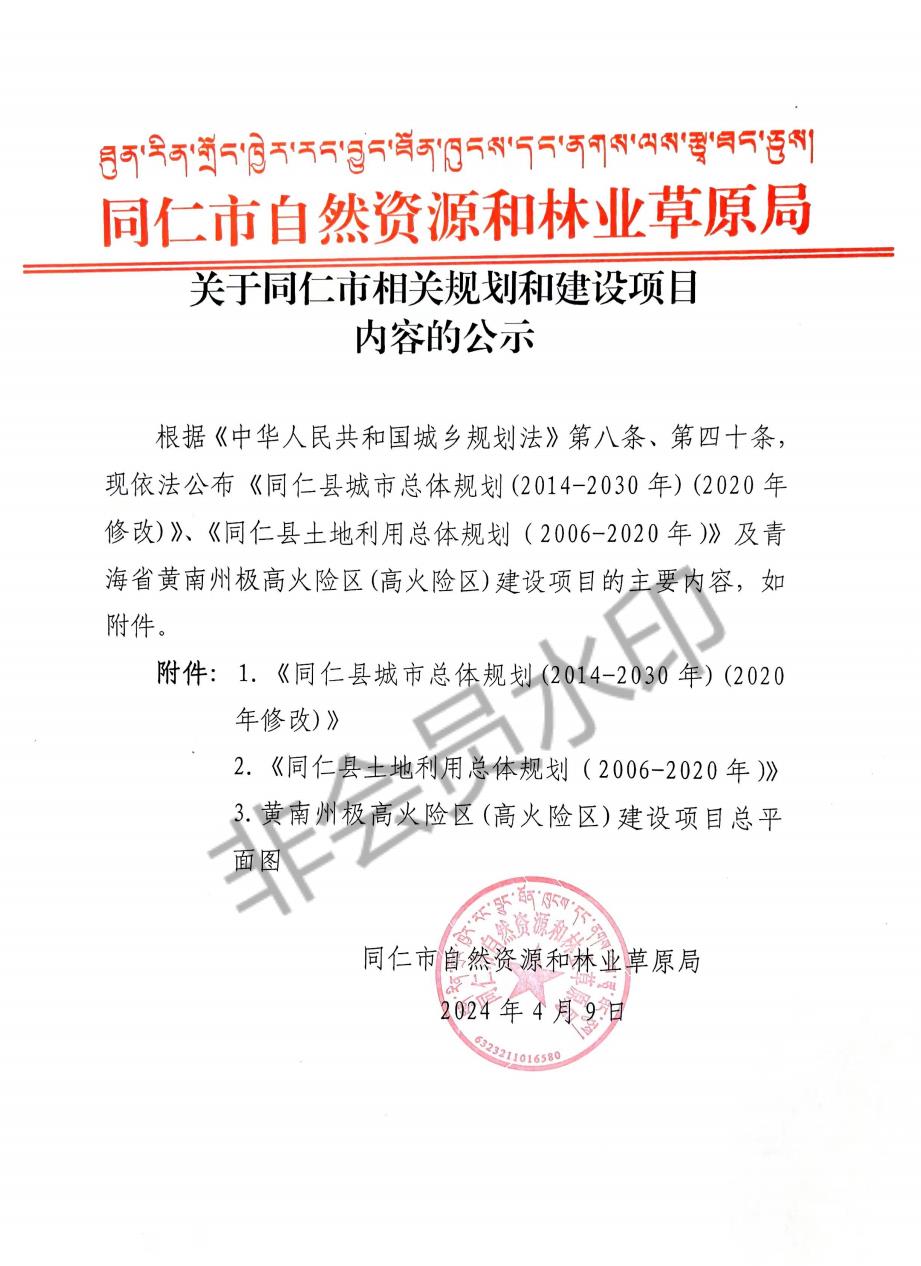关于同仁市相关规划和建设项目内容的公示(盖章)