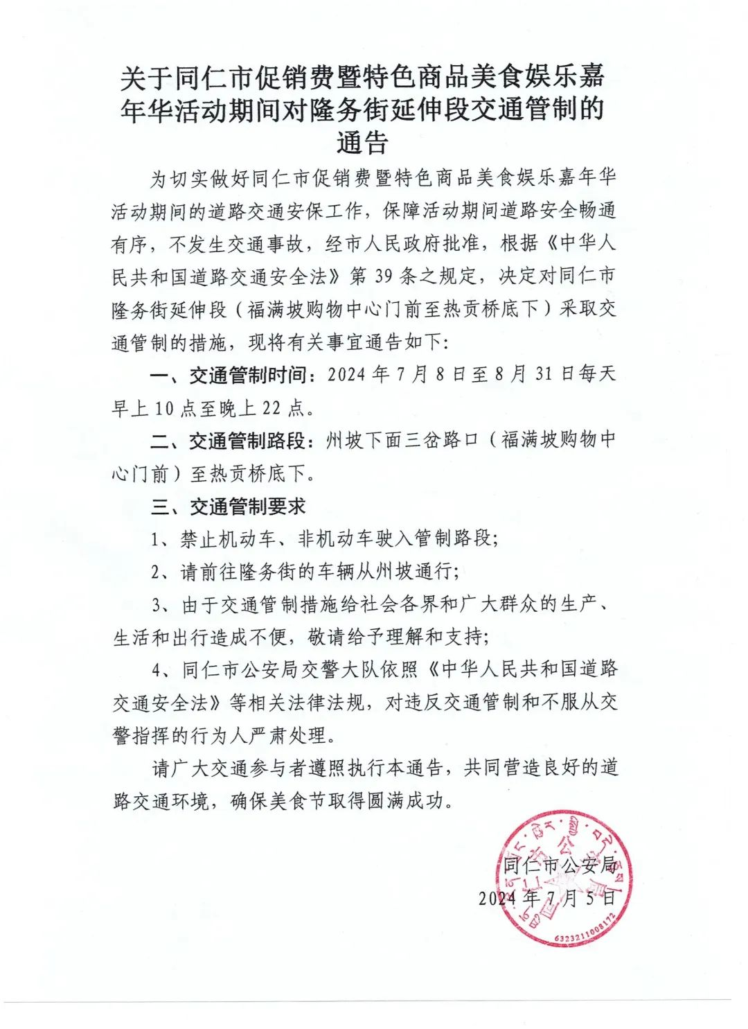 关于同仁市促销费暨特色商品美食娱乐嘉年华活动期间对隆务街延伸段交通管制的通告(藏汉双文)