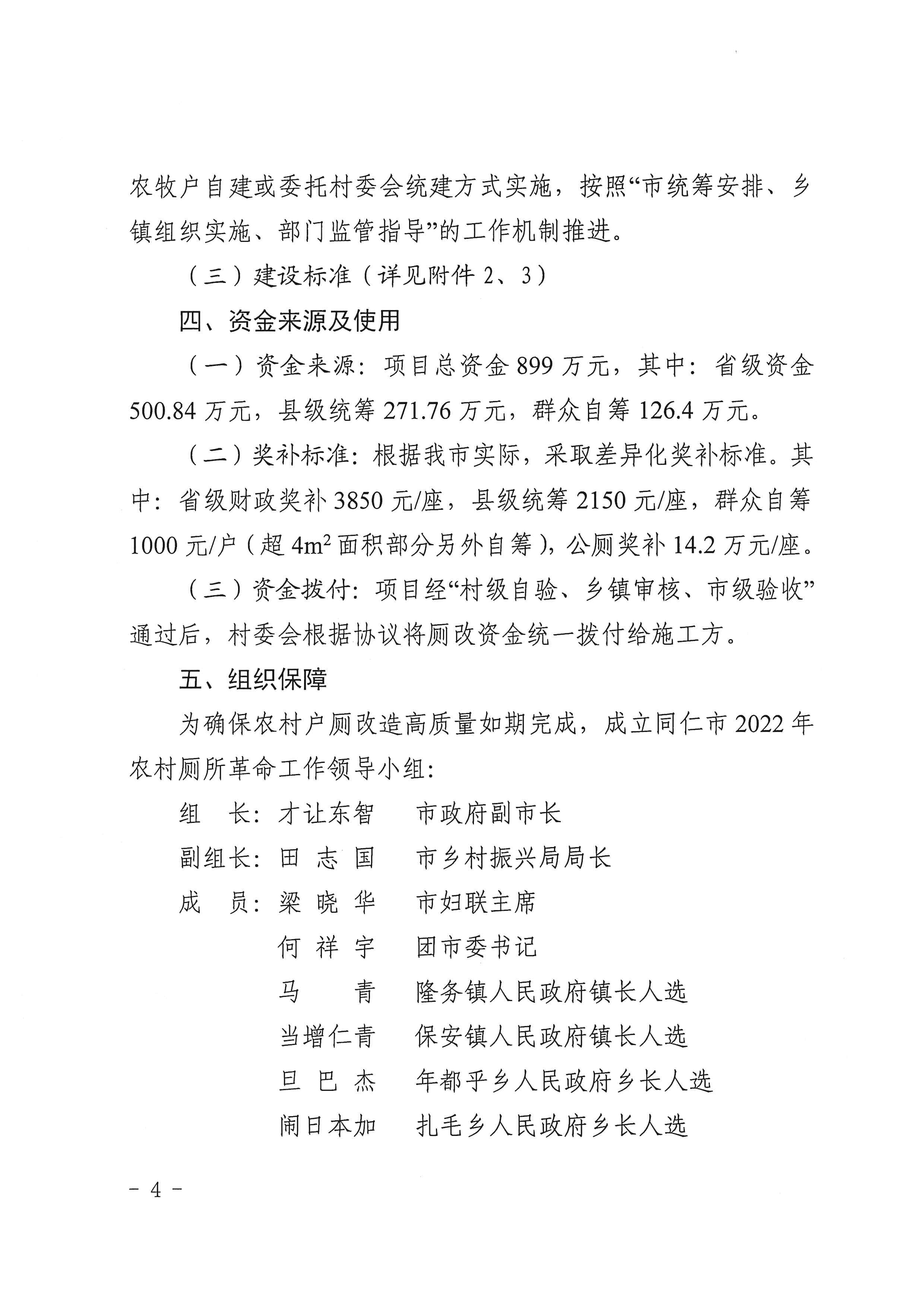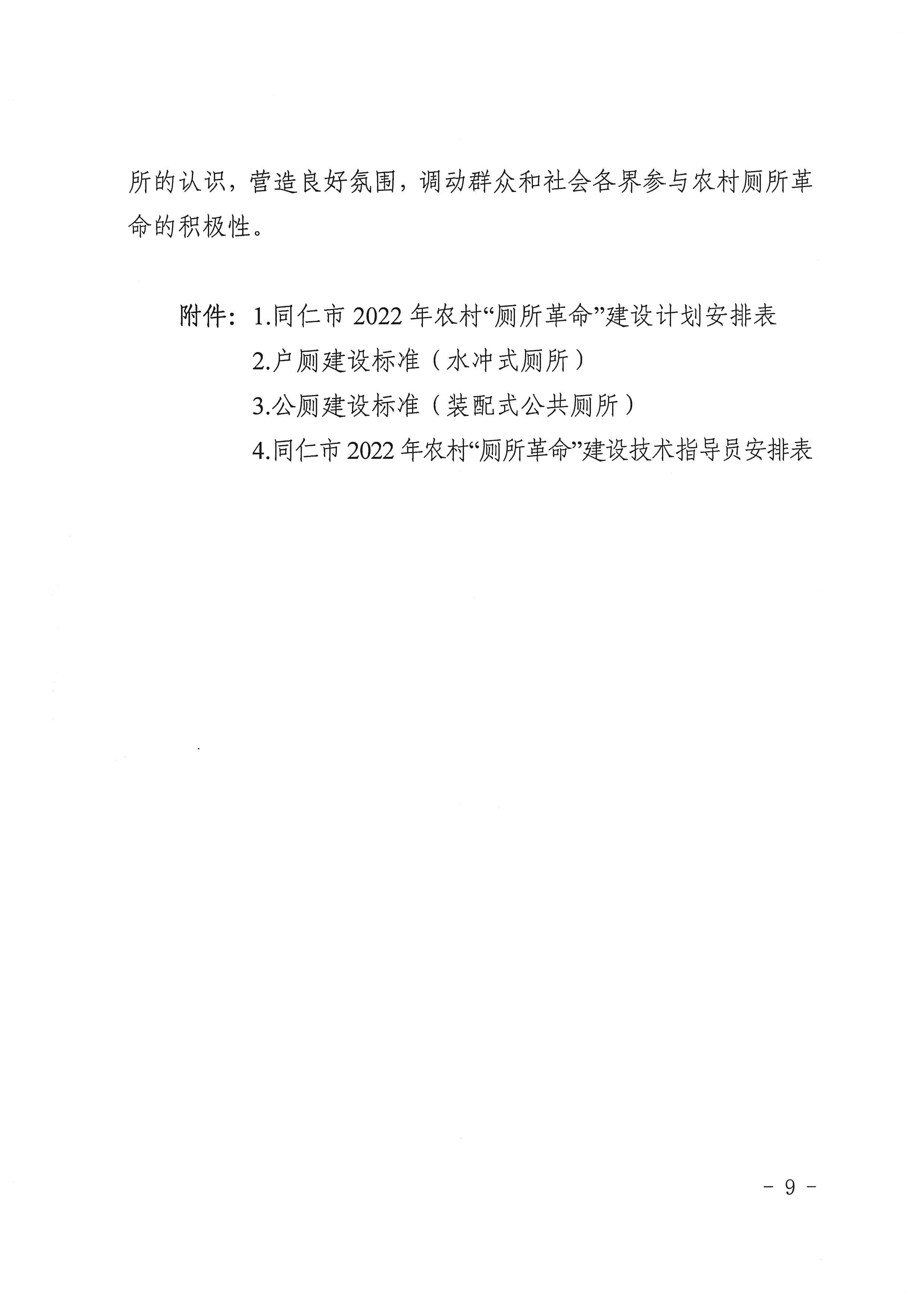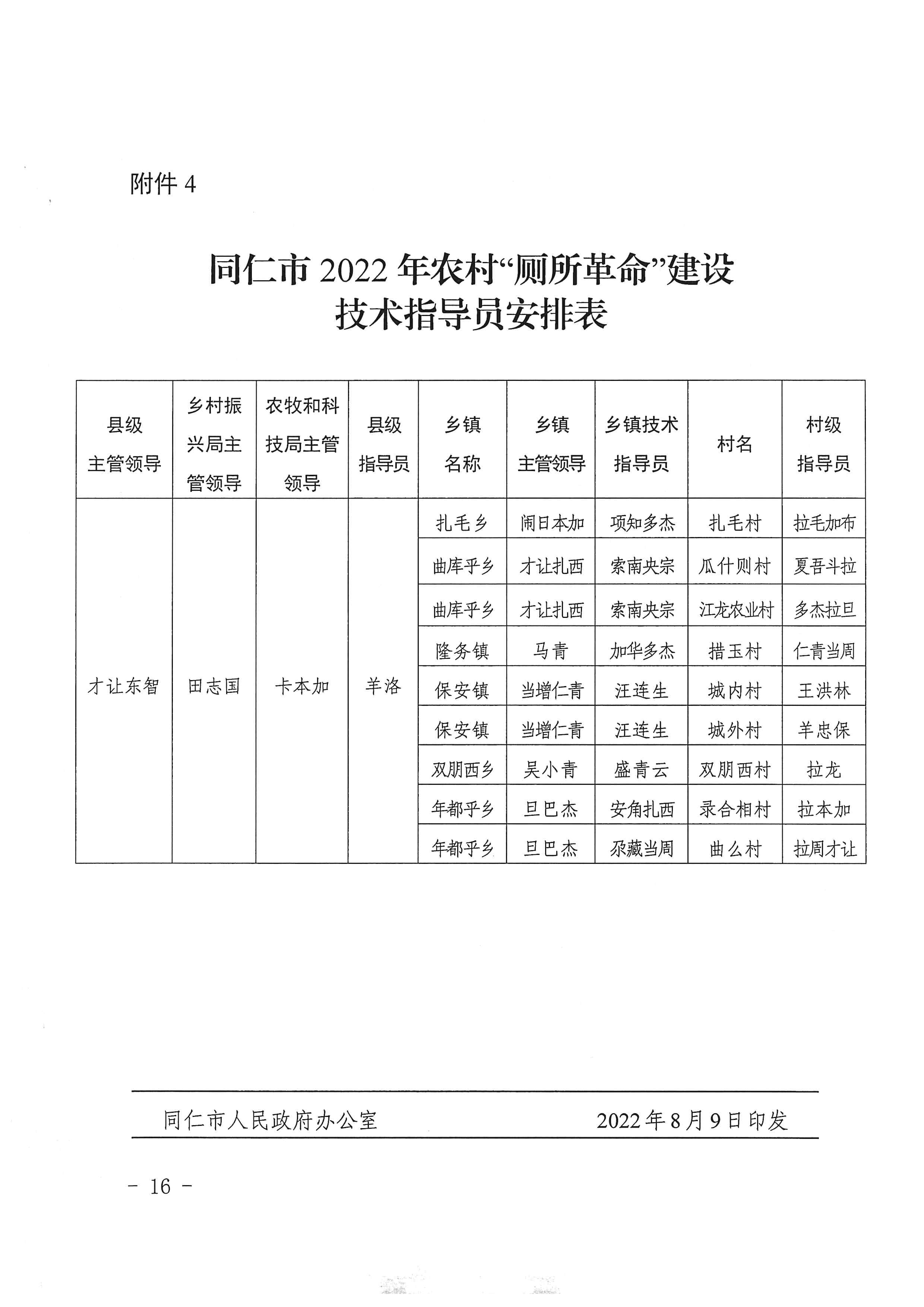 关于印发《同仁市2022年农村厕所革命实施方案》的通知