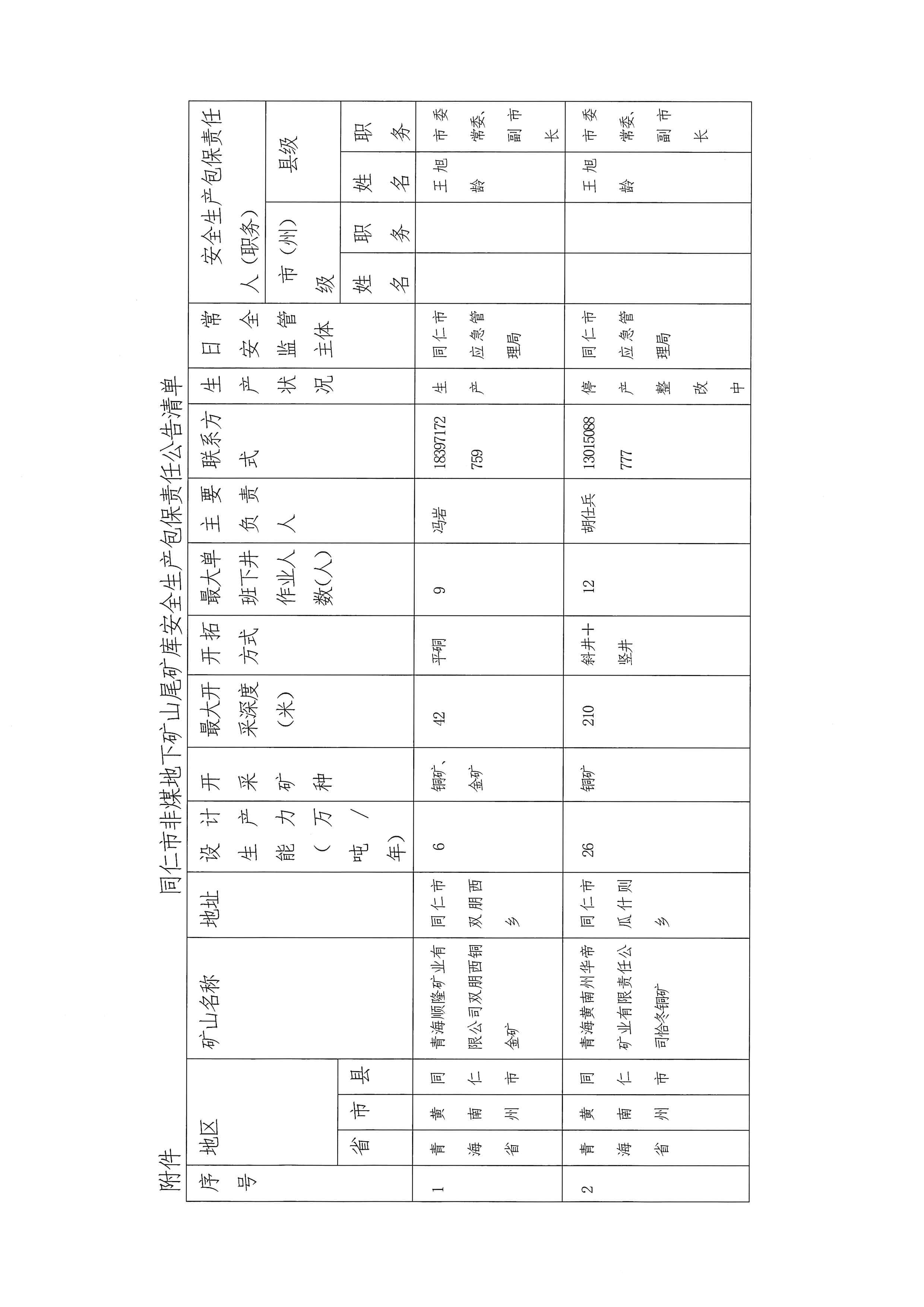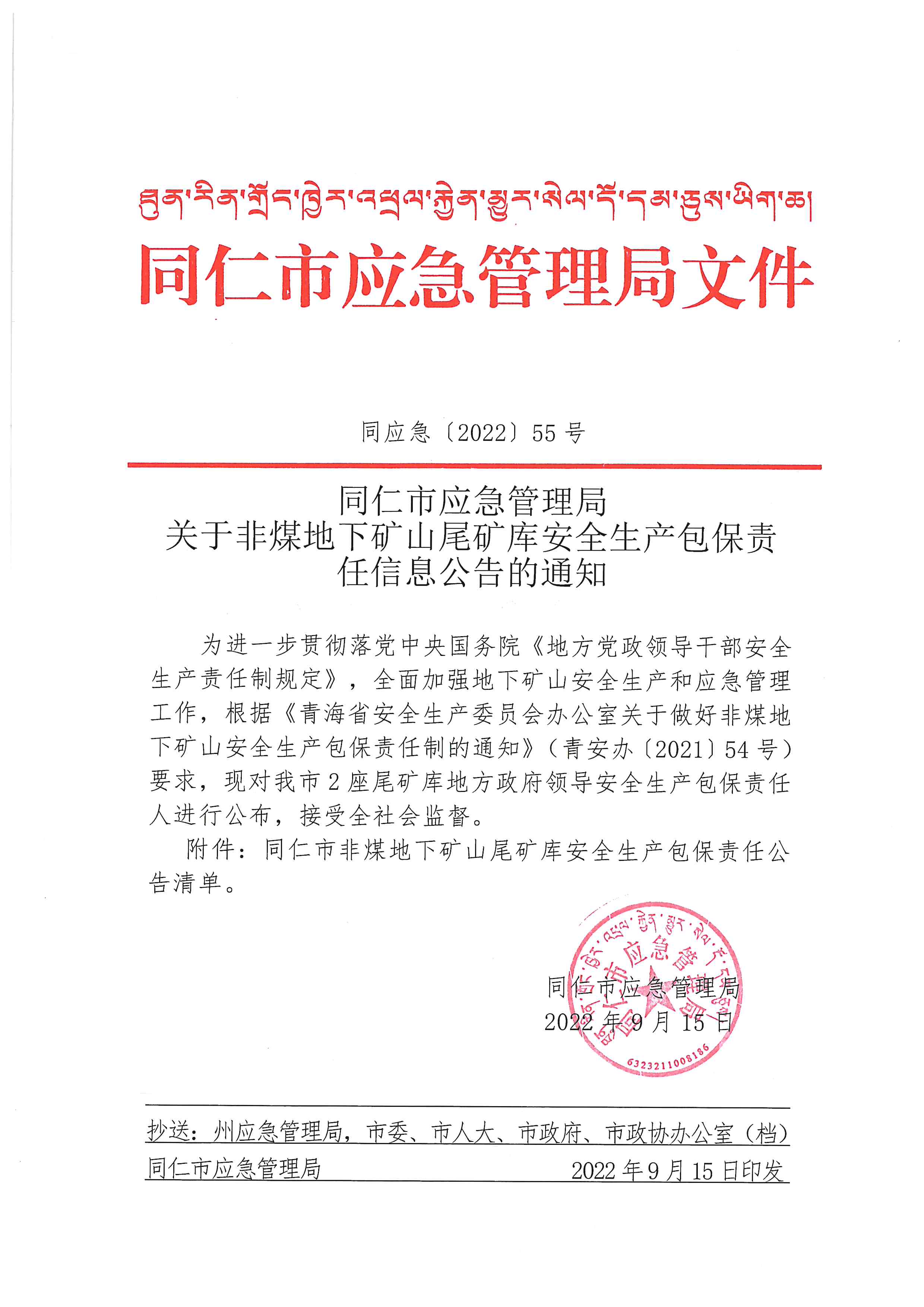 关于非煤地下矿山尾矿库安全生产包保责任信息公告的通知