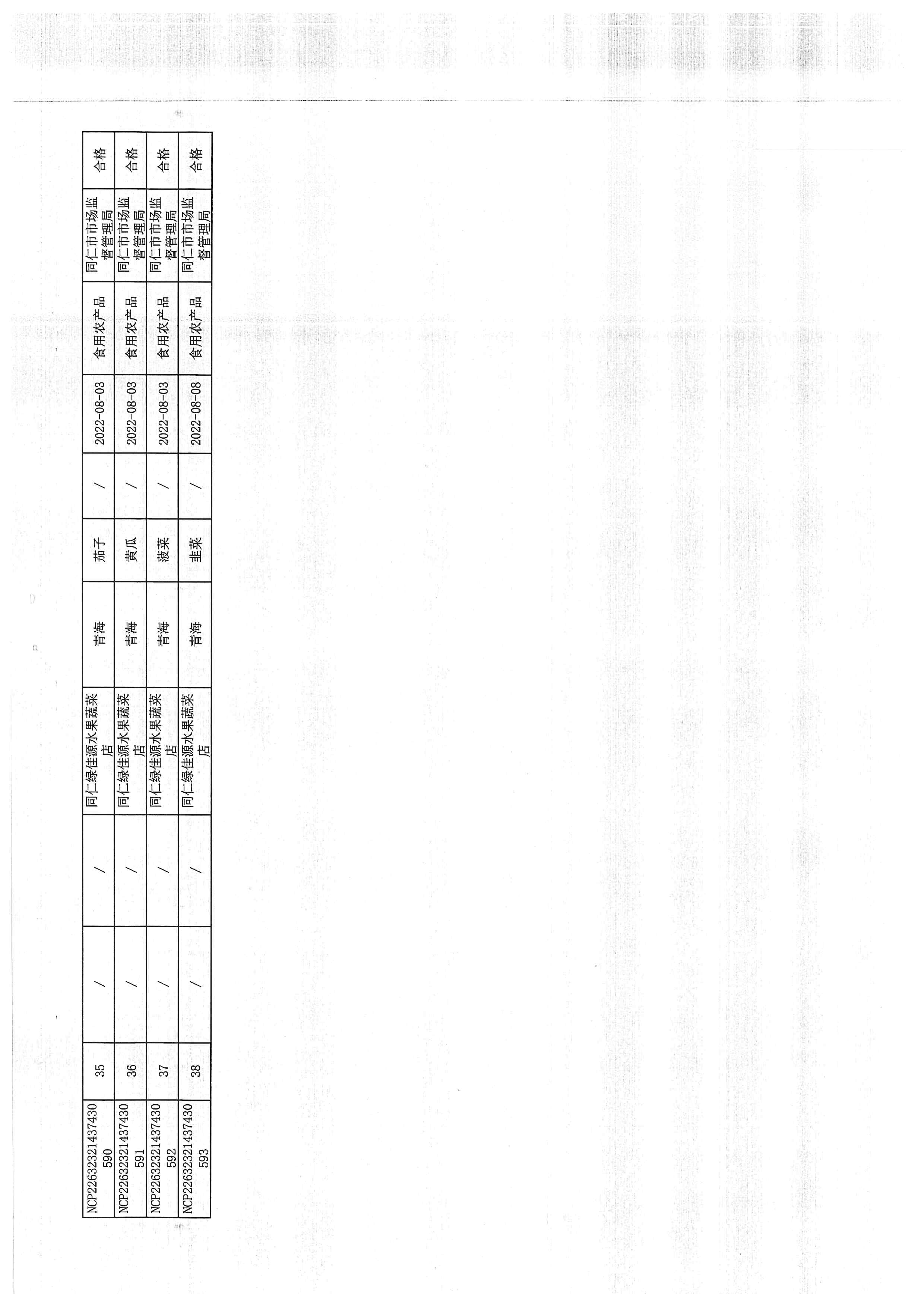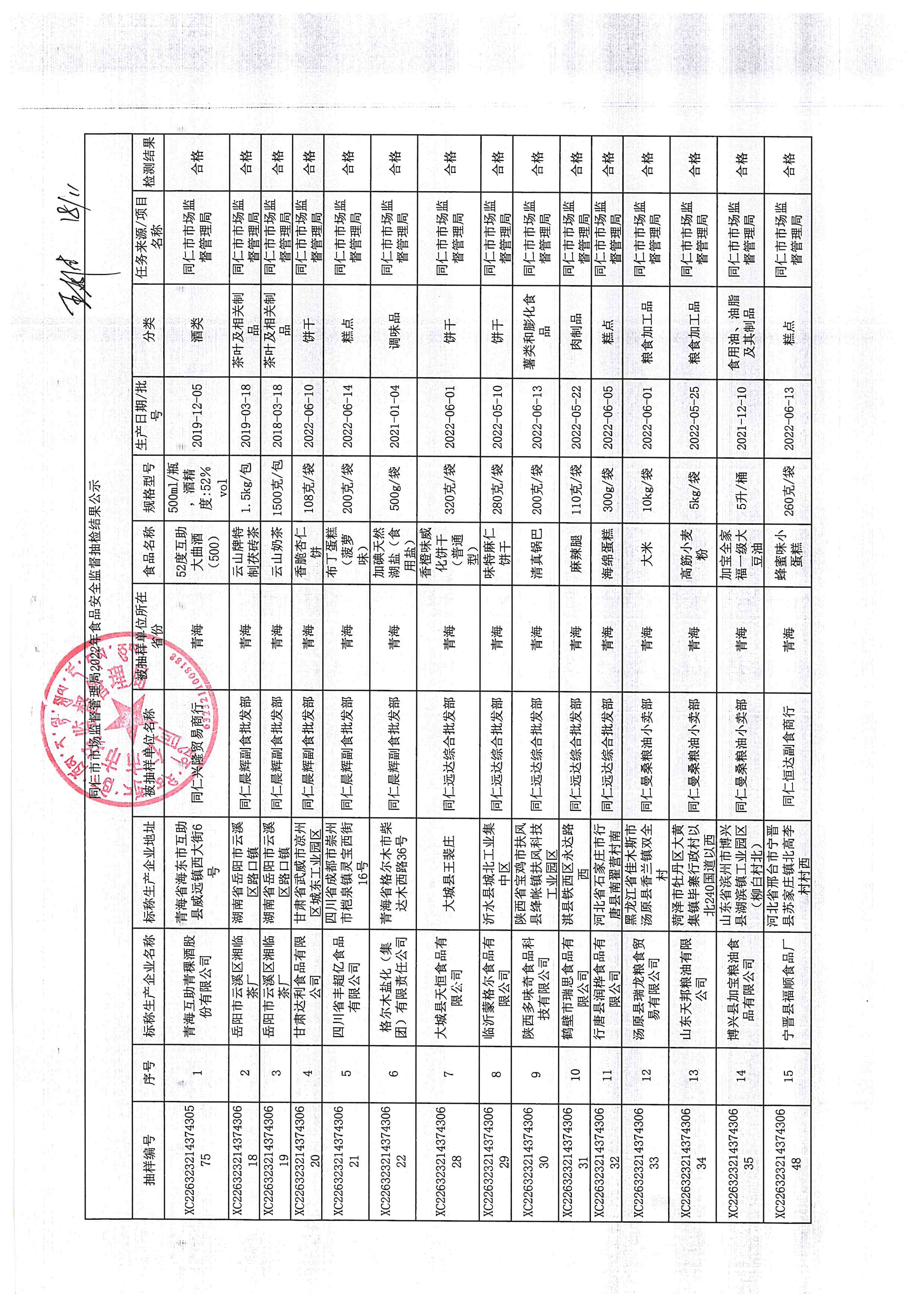 同仁市市场监督管理局2022年8月份食品安全监督抽检公示表