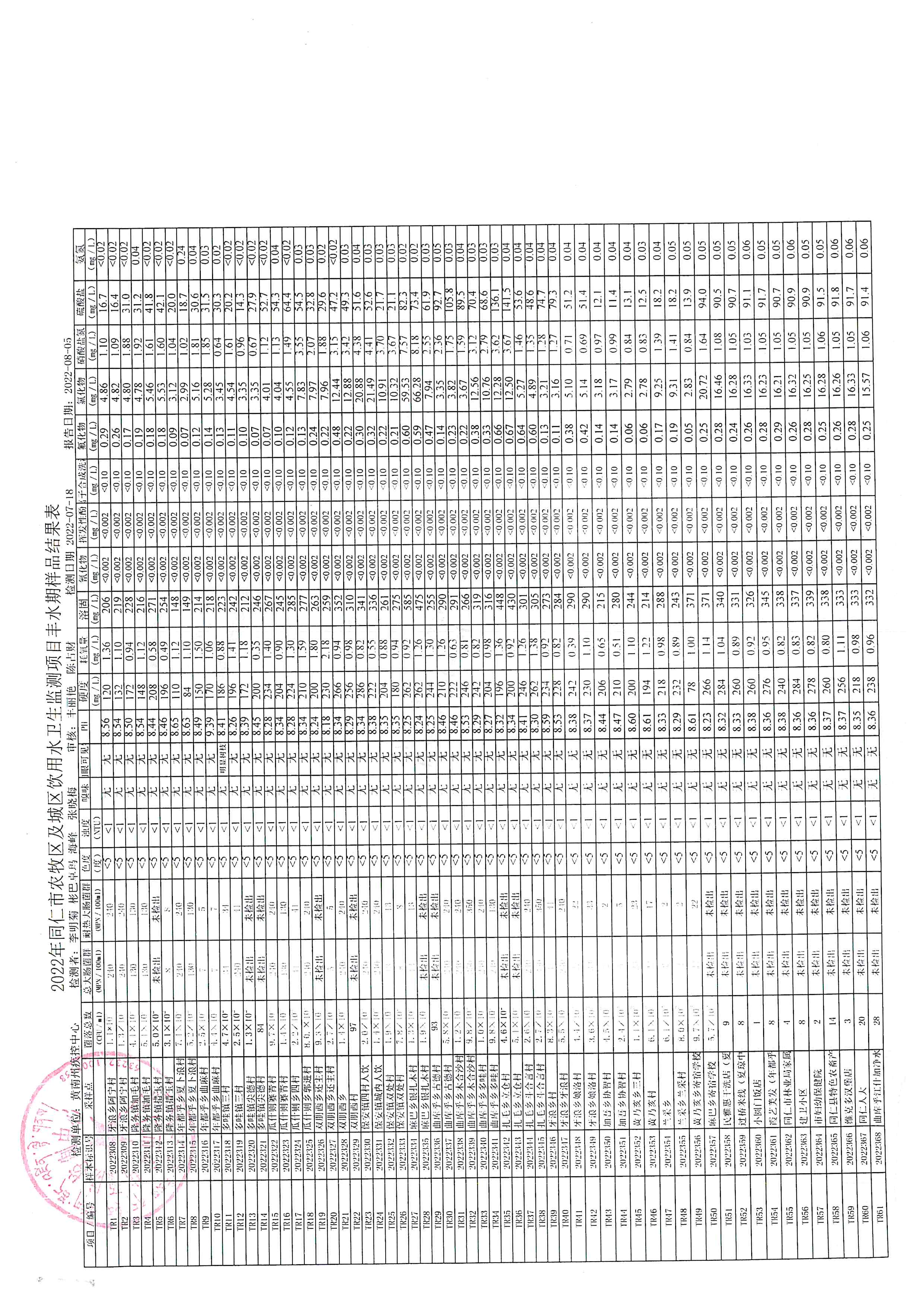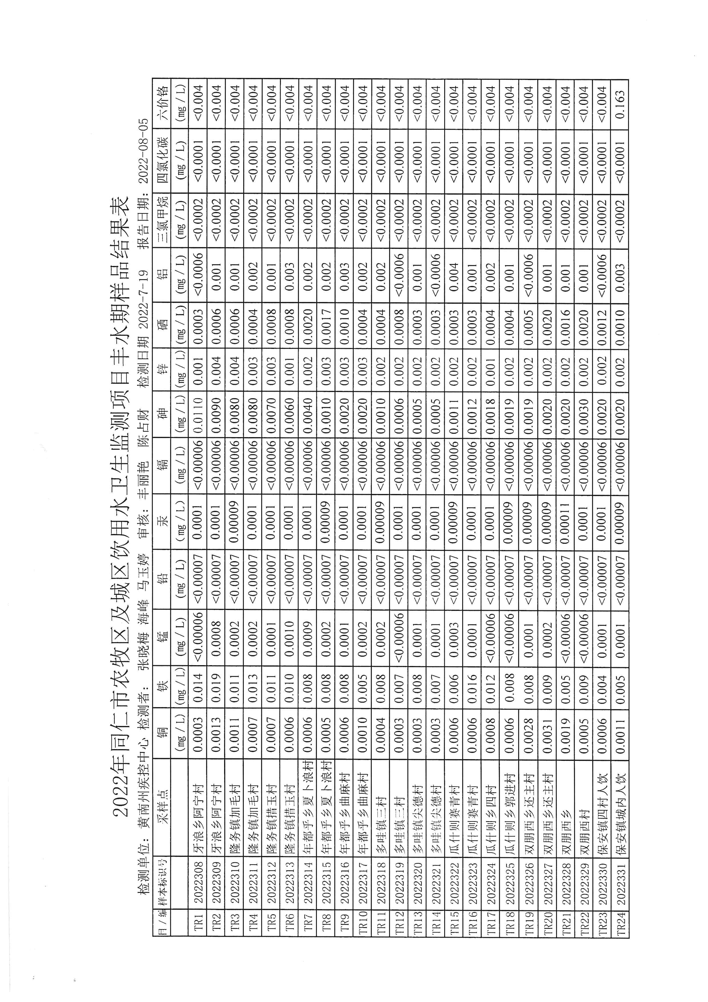 2022年同仁市农牧区及城区饮用水卫生监测项目丰水期样品结果