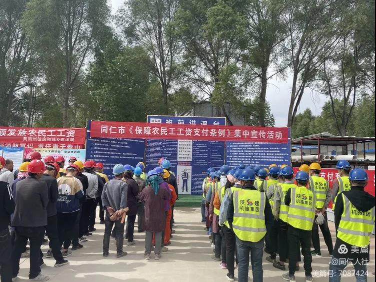 今年是《保障农民工工资支付条例》颁布实施一周年,为了进一步规范农民工工资支付行为,保障农民工按时足额获得工资,推动《条例》在我市落地见效,营造全社会关心关爱农民工的良好氛围,以优异成绩庆祝建党100周年。5月20日上午,同仁市人社局联合州市根治欠薪领导小组各成员单位在黄南剧院项目建设工地集中开展《保障农民工工资支付条例》实施一周年宣传活动。