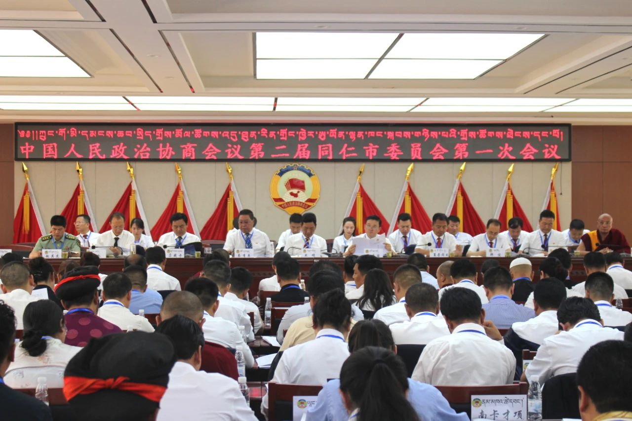 中国人民政治协商会议第二届同仁市委员会第一次会议,7月13日下午在市委五楼会议室隆重开幕。大会执行主席尕藏卡、李加东智、崔生林、隆务贡.久美更登尖措出席会议并在主席台就座。州委常委、市委书记旦增,市委副书记、市人民政府市长人选赵建国,市人大常委会党组书记、主任人选蔡有年,市政协党组书记、主席人选尕藏卡,以及市委各常委,市人大、市政府、市政协相关县级领导,市法院、检察院主要领导应邀参加会议。