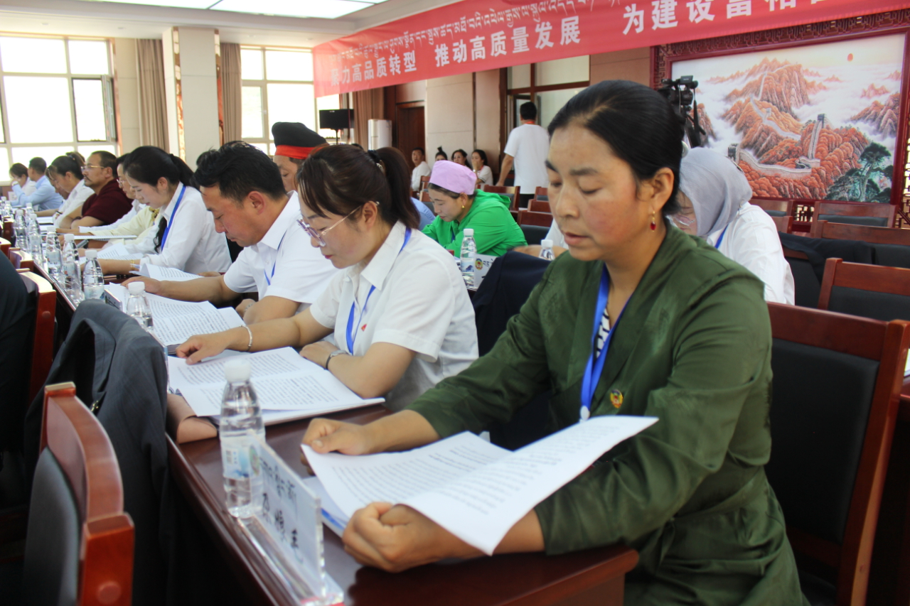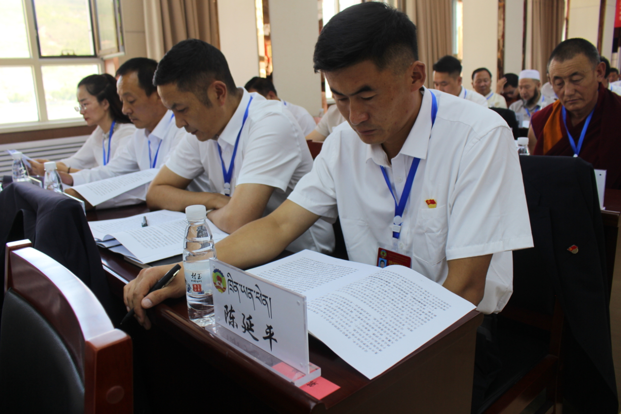 政协第二届同仁市委员会党组副书记李加东智主持大会,会议在庄严的国歌声中开幕。